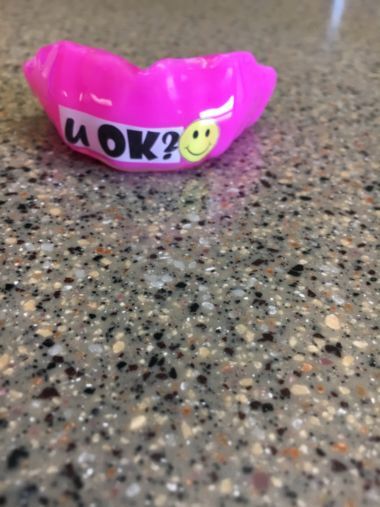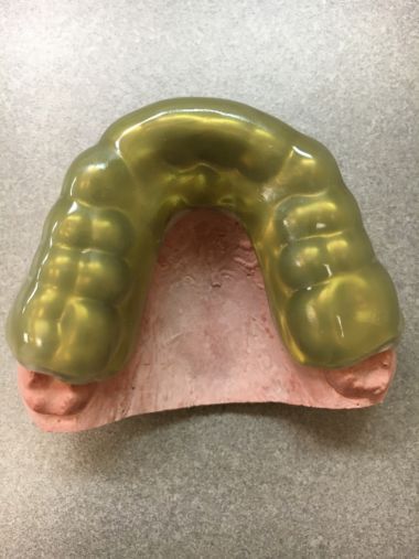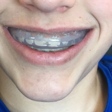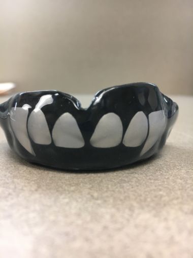 We recommend and fabricate in our office a dual laminated guard which is made under high heat and high pressure. Athletes can design their guard and personalize it with a choice of color, design, sticker, or numbers. They are inexpensive, comfortable, and allow the athlete to breathe and talk while playing without the worry that it will fall out. It is a safe and cosmetic choice for athletic equipment.